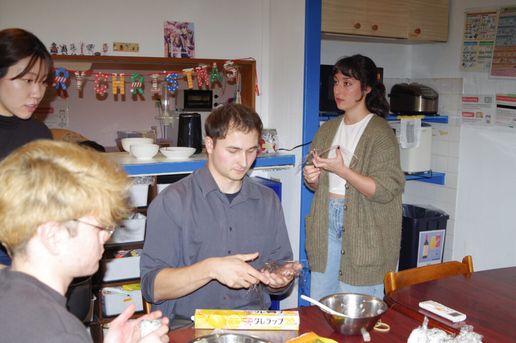 「自分でおにぎり握るのは初めて!」という外国人メンバーがほとんどで、キッチンには「How do I do this?」「Is this OK?」の声が飛び交います。