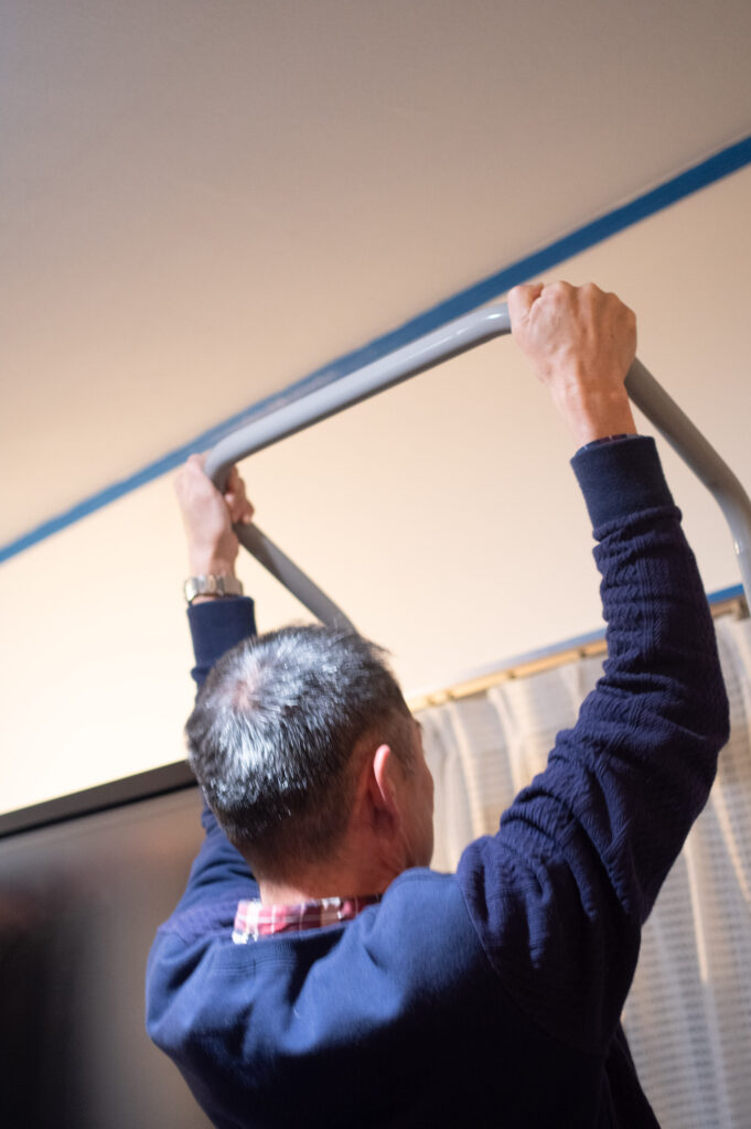誰かが玄関近くのバーにぶら下がったのをきっかけに、いつの間にか「懸垂チャレンジ」がスタート。