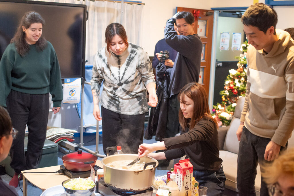 ちゃんこ鍋パーティーにはOEHに住んでいる外国人たちが一気に集合しました。
