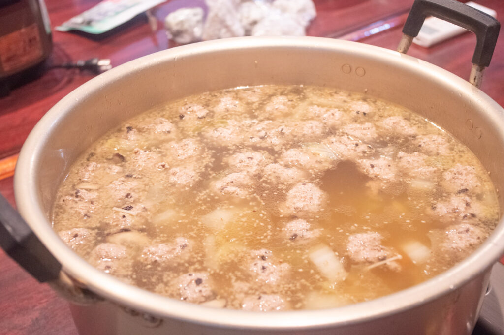 鶏団子、野菜がたっぷり入った”ど定番”ちゃんこ鍋。